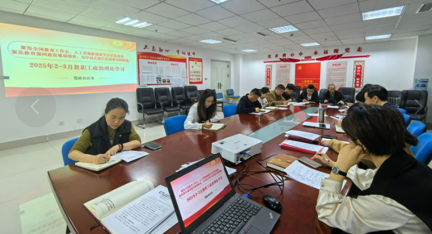 为深入学习贯彻习近平总书记关于教育的重要论述,认真落实学校第三次党代会精神,3月27日上午,党政办公室在D1417会议室组织召开了2025年2—3月政治理论学习。会议由党政办公室主任唐勇主持,部门全体教职工参加。