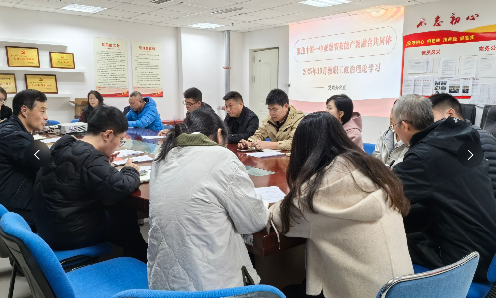 10月31日,党政办公室在D1417会议室组织召开10月政治理论学习会议,会议主题为“聚焦中国——中亚数智技能产教融合共同体”。会议由党政办公室主任唐勇主持,部门全体教职工参加学习。